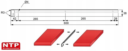 Listwy te stosuje się aby połączyć ze sobą dwa blaty o profilu R3 i grubości 38mm.