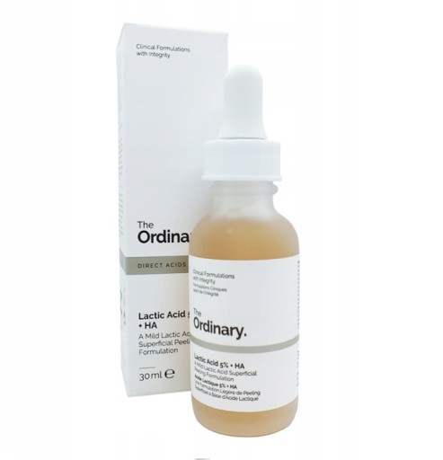 The Ordinary - Lactic Acid 5% + HA - delikatny peeling kwasowy, który oczyści i dogłębnie nawilży skórę. Kwas mlekowy należny do alfa-hydroksykwasów i jest jednym z głównych składników NMF (naturalnego czynnika nawilżającego). Zastosowany w stężeniu między 1-10% wykazuje działanie nawilżające. Działanie to jest dodatkowo wspomagane przez kwas hialuronowy, dzięki czemu zwiększa się także elastyczność skóry. Obok nawilżających i złuszczających funkcji, kwas mlekowy wykazuje właściwości antybakteryjne, przeciwstarzeniowe i pełni rolę regulatora pH. Kosmetyk ma pH wahające się między 3,6 a 3,8. Nie zawiera alkoholu, silikonów i olejów. Jest wegański, a podczas jego produkcji nie ucierpiały żadne zwierzęta.