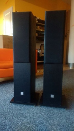 PODSTAWKI O WYS. OKOŁO 4,3 CM - i wymiarach uniwersalnych 29,2 cm X 29,2 cm bardzo uniwersalnych pasujących praktycznie do każdych kolumn domowych..Na foto ogromne kolumny JBL. Na dole kolumny Spektor 6 by Dali .