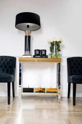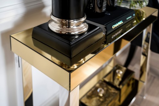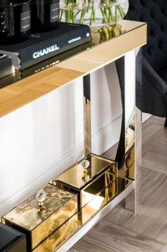 To właśnie kolekcja BROOKLYN o harmonijnej, prostej, minimalistycznej konstrukcji stanowiła pierwszą demonstrację konsoli w wersji lustrzanej. Wzbudziła fascynację wśród naszych klientek, nie tylko poprzez formę jaką jej nadaliśmy, ale przede wszystkim przez materiał z jakiego została wykonana - lustro złote. Lustro kryształowe nadało jej stylu glamour, ponieważ stała się lśniącym, kuszącym bogactwem mebelkiem, który dzisiaj przez firmę AS HOME może zostać wprowadzony do każdego wnętrza.