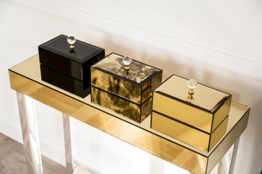 Konsola lustrzana złota wypracowana w wytwórni firmy AS Home, sprawiła, że estetyka i funkcja spotkały się w pół drogi i otworzyły produkcję nowych koncepcji projektowania przedmiotów codziennego użytku.