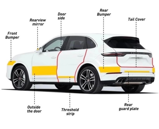 Wysokiej jakości folia ochronna CARBON 5D przeznaczona do zabezpieczania słupków, progów drzwi, zderzaków, krawędzi bagażnika oraz innych zewnętrznych i wewnętrznych elementów nadwozia.