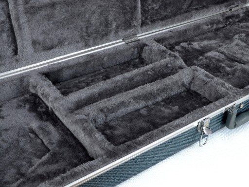 Zamykany jest na cztery zameczki, z czego jeden na kluczyk. Wewnątrz znajdują się dwie przegrody na akcesoria. Zewnętrzna powłoka posiada fakturę skórki lub siateczki. Wewnątrz futerał wypełniony jest materiałem izolacyjnym i wyścielony gęstym pluszem. Tworzy to doskonałą izolację termiczną instrumentu. Futerał gitarowy występuje w dwóch wersjach kolorystycznych.