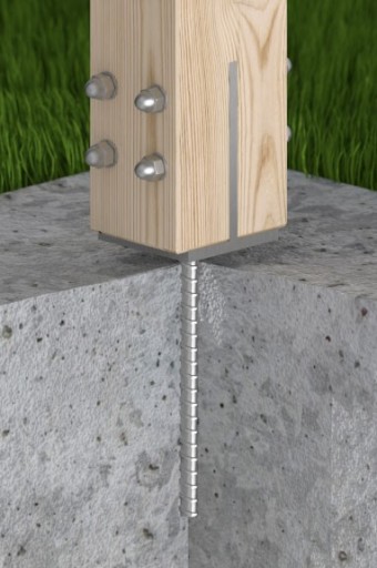 Podstawa PSW ułatwia montaż elementów drewnianych z betonem oraz zapewnia odpowiednia dylatację drewna do podłoża.