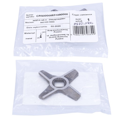 ORYGINALNY DWUSTRONNY nożyk marki ZELMER do mielenia mięsa z KOMORĄ MIELENIA NUMER 8