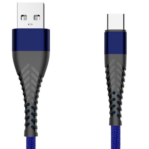 Kabel USB 2.0 - USB-C Typ-C, oplot z polipropylenu w kolorze czarno-niebieskim o długości 1.5 metra