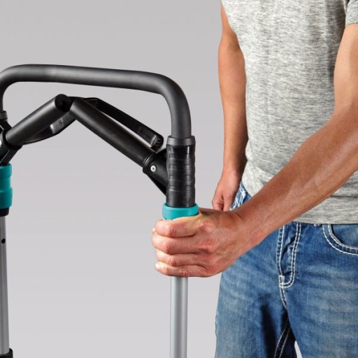 System transportowy TS 1500 znacznie ułatwia przeprowadzki, jest wyjątkowo pomocny podczas inwestycji budowlanych lub większych dostaw towarów. Tym solidnym wózkiem do dużych obciążeń bez problemu przewieziemy ładunek o wadze nawet do 200 kg, dzięki czemu w niewielkim zakresie może on zastąpić wózek podnośny. Wysuwany na wysokość do 124 cm uchwyt daje możliwość optymalnego dostosowania wysokości wózka w zależności od wzrostu, co umożliwia transport bez obciążania pleców. Duża powierzchnia płyty ładunkowej o wymiarach 59 × 37 cm umożliwia transport sprzętu AGD jak pralki lub lodówki. Zaokrąglona płyta tylna gwarantuje bezpieczny transport również przedmiotów o owalnych kształtach, takich jak donice kwiatowe, butle gazowe lub pnie drzew. Dzięki poprzeczce ułatwiającej przechył TS 1500 można łatwo pochylić do pozycji toczenia. Dzięki odpornym na przebicia, piankowym kołom z dwoma zintegrowanymi łożyskami kulkowymi o średnicy 20 cm wózek TS 1500 jest odpowiedni do transportu po schodach, przy dopuszczalnej masie ładunku do 100 kg. Wózek z powodzeniem pokona również niewielkie wzniesienia. Wymiary wózka po złożeniu wynoszą 60 × 99 × 11 cm, dzięki czemu mieści się on w bagażniku lub w garażu i nie zajmuje wiele miejsca podczas przechowywania.