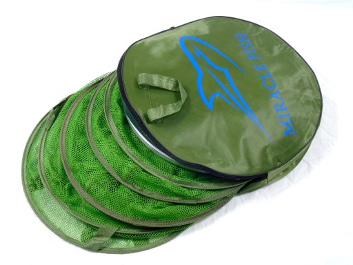 Dzięki zastosowaniu odpowiedniego Gumowanego tworzywa siatka szybko schną , co niweluje występowanie nieprzyjemnego zapachu rybiego śluzu. Całość na aluminiowej obręczy wyposażonej w podpórkę.