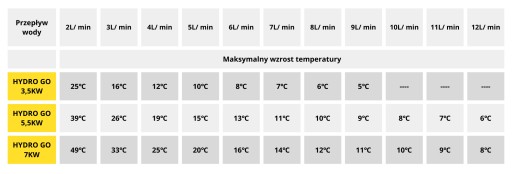 WYDAJNOŚĆ PODGRZEWACZA WODY HYDRO GO!