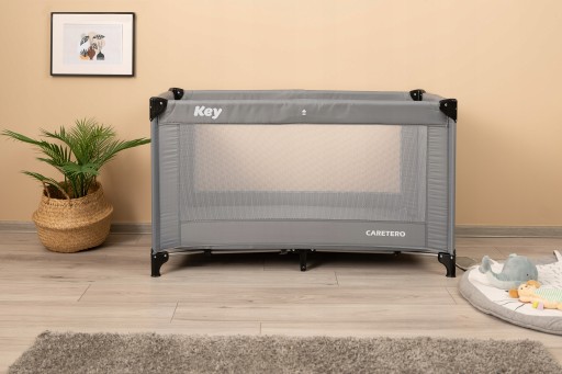 Łóżeczko turystyczne KEY to dobre rozwiązanie w podróży, jak i w domu. Łóżeczko ma prostą, solidną konstrukcję, co w połączeniu z łatwym użytkowaniem i niewielką wagą produktu, sprawdzi się w każdej sytuacji. Łóżeczko wyposażone jest w materacyk o wymiarach 120x60cm oraz torbę transportową, które idealnie sprawdzą się w warunkach turystycznych.