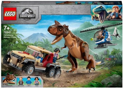 - Zestaw LEGO® Jurassic World (76941) pozwala dzieciom odgrywać emocjonujący pościg za karnotaurem i bawić się helikopterem do złożenia z klocków oraz pickupem.