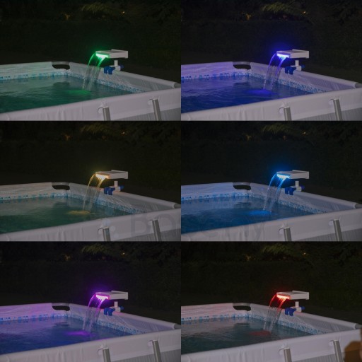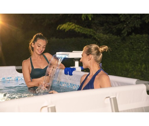 Kąpiel w prywatnym basenie to wielka przyjemność jaką możesz sobie zapewnić w zaciszu własnego ogrodu. Firma BESTWAY zadbała również o to by Twoja kąpiel była nie tylko przyjemna, ale i jedyna w swoim rodzaju zarówno w dzień jak i w nocy. Wszystko to za sprawą tej tryskającej kolorową wodą fontanny, wodospadu LED który zapewni odpowiedni nastrój a także doda wrażenia luksusu każdemu basenowi. Ciesz się szumem wodospadu i pokazem wielokolorowych promieni świetlnych przenikających przez tryskającą wodną kaskadę podczas nocnych kąpieli z rodziną i przyjaciółmi.