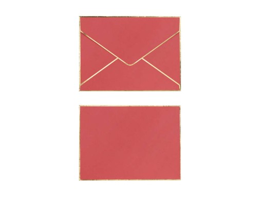 Różowa koperta ze złotym metalizowanym nadrukiem.