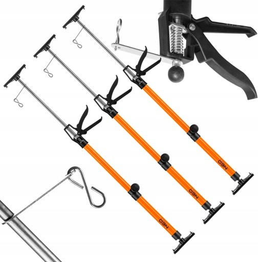 Podpora teleskopowa 50-115 cm 35-433 marki NEO to narzędzie przydatne do wspierania elementów budowlanych i konstrukcyjnych z maksymalnym obciążeniem 45 kg. Umożliwia wygodne mocowanie płyt gipsowo-kartonowych, służy także m.in. do rozpierania montowanych futryn. Podpora posiada regulowany zakres wysokości (od 50 do 115 cm). Została wyposażona w gumowe, antypoślizgowe stopki dla lepszej stabilizacji podparcia. Wygodna w użyciu, zaprojektowana z myślą o szybkim rozsuwaniu oraz z możliwością blokady dla zwiększonego bezpieczeństwa. Wytwarzana z trwałych materiałów, będzie narzędziem na wiele lat.