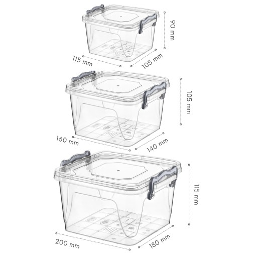 Idealnie stworzony zestaw pojemników, w skład którego wchodzą pojemniki o różnych pojemnościach: