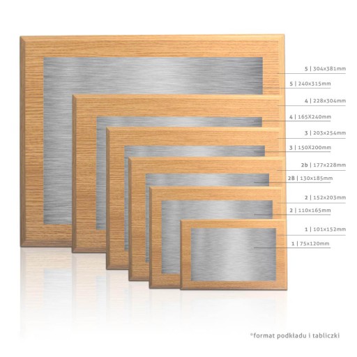 - Materiał: podkład drewniany, blaszka aluminiowa