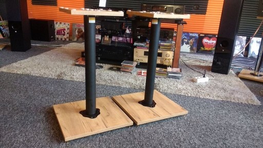 WIDOCZNE NA FOTO - stojaki z regulowanymi kolcami w celu wypoziomowania i możliwością wyprowadzenia przewodów przez rurę środkową.(kolce do wyboru złote z "główką" LUB kolce ostre z talerzykami czarne lub złote. )