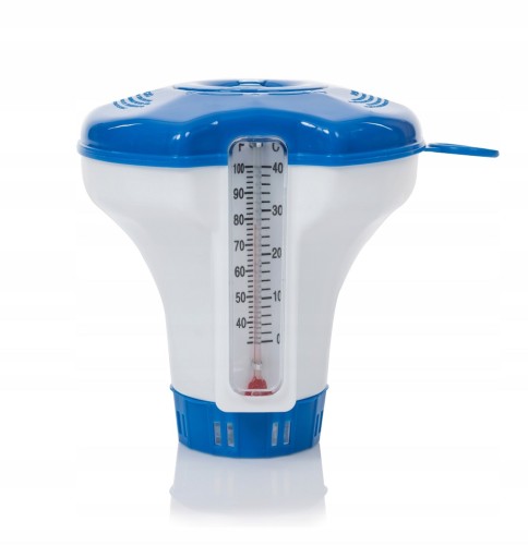 Przedmiotem aukcji jest pływający dozownik chloru z wbudowanym termometrem stosowany w basenach kąpielowych, Jacuzzi lub Spa. Dozownik służy do powolnego rozpuszczania tabletek chlorowych 20g i granulatów oraz równoczesnego pomiaru temperatury wody w basenie. Można w nim również stosować 200 gramowe tabletki które należy przełamać.