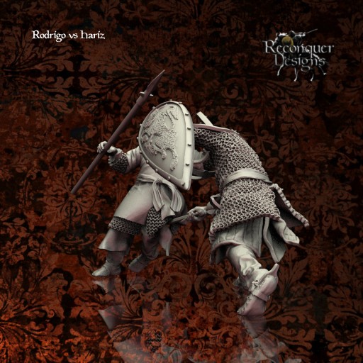 Pojedynek - Scena - El Cid kontra Hariz, Czempion - Figurki do Gier Bitewnych - SAGA - Crusades - Caballero - Reconquer Designs - 3D Monkey