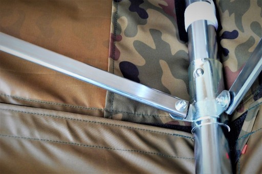 - Dwa rodzaje ramion - Montowane do nogi namiotu za pomocą obejmy, przykręcane na śrubę .lub Zakładane bezpośrednio na wcześniej opisane wzmocnienie.