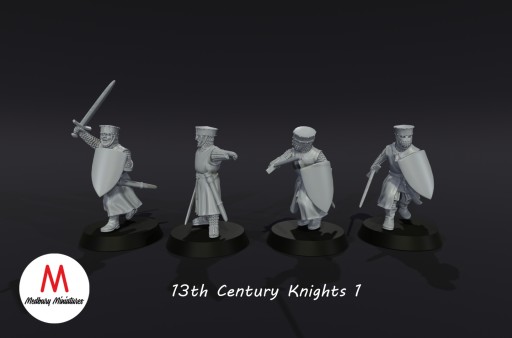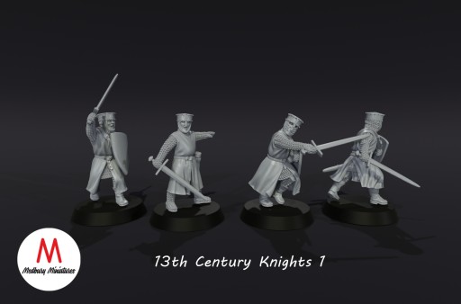 13th Century Knights 1 - Rycerze Pieszo - Usługa Druku 3D Figurki do RPG lub Gier Bitewnych