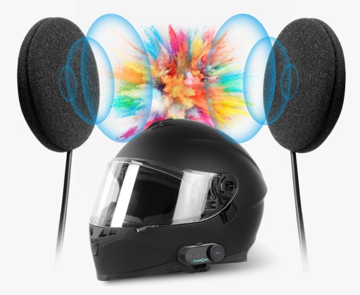 W interkomie zastosowano hybrydowy zestaw słuchawkowy, dzięki czemu w zestawie znalazły się aż 2 mikrofony - jeden na pałąku przeznaczony do kasków otwartych, drugi na giętkim przewodzie przeznaczony do kasków zamkniętych.