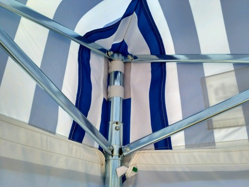 - Metalowe elementy łączeniowe (w przypadku tanich importowanych pawilonach tego typu są plastikowe)