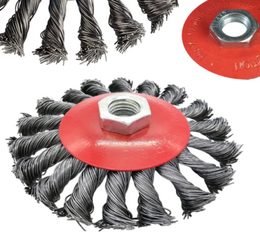 Szczotka stożkowa z nakrętką M14 wykonana została ze stali, jest trwała i niezwykle wydajna. Czyści bardzo szybko i dokładnie. Szczotka świetnie sprawdzi się w procesie usuwania starej farby czy rdzy z metalowych powierzchni. Przeznaczona jest do różnego rodzaju prac remontowo-budowlanych oraz warsztatowych. Dzięki zastosowaniu stalowego, gęsto splatanego drutu produkt doskonale sprawdza się podczas agresywnego szczotkowania.