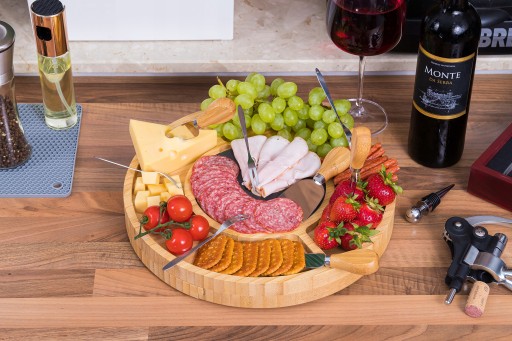 DESKA KOŁO PATERA DO SERÓW PRZYSTAWEK DESKA DO WĘDLIN PRZEKĄSEK ZESTAW NOŻY