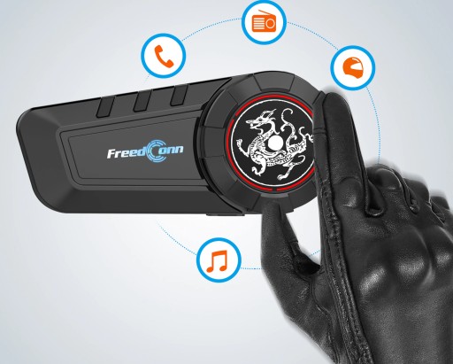 Interkom posiada moduł radia FM, więc możesz go słuchać bez użycia telefonu. Łączy się również z innymi modelami marki FreedConn oraz interkomami innych marek.