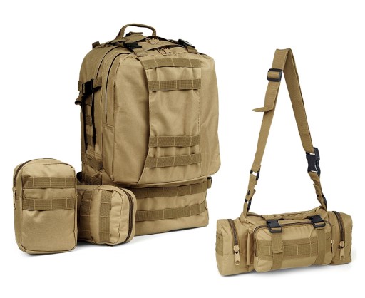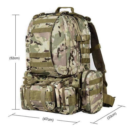 Plecak taktyczny wojskowy o pojemności 50l z dodatkowymi zasobnikami 4w1