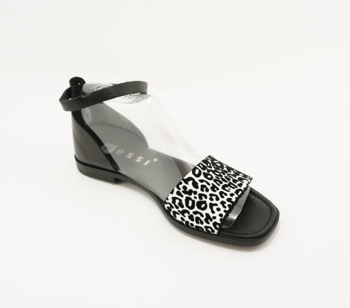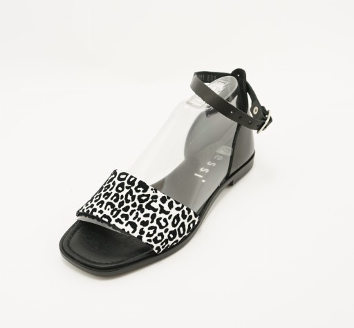 Sandały Nessi 21065 czarny biały płaska podeszwa