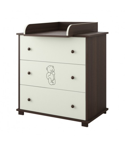 Komoda dziecięca PTILOU wykonana została z wysokiej jakości płyty meblowej pierwszego gatunku. Jej zaokrąglone krawędzie gwarantują bezpieczeństwo, a cztery utrzymujące ją w miejscu nogi - stabilność (i łatwość sprzątania pod spodem!). Komoda ma zamontowane trzy pojemne szuflady na prowadnicach rolkowych. Jej neutralna kolorystyka pozwoli dopasować ją do każdego dziecięcego pokoju, niezależnie od wystroju. Dodatkowo istnieje możliwość wyboru koloru detali komody (blat, nóżki i gałki), z rozwijanego menu powyżej.