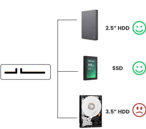 Pracuje z dyskami twardymi 2,5'' ' HDD i SSD z łączami SATA 22 PIN