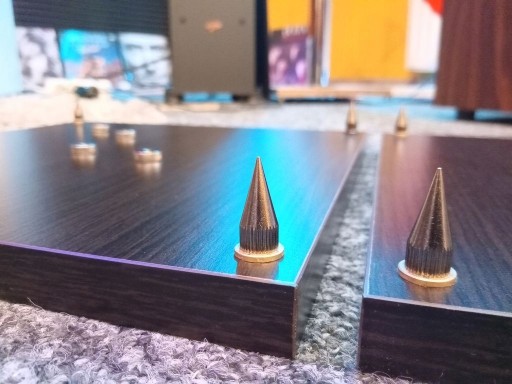 PODSTAWY CHRONIĄ DROGIE KOLUMNY PRZEZ RYSAMI OD ODKURZACZA. POZA TYM KOLUMNY NA NICH WYGLĄDAJĄ BARDZIEJ OKAZALE. ZMNIEJSZAJĄ WIBRACJE PODCZAS ODSŁUCHU ORAZ IZOLUJĄ KOLUMNY OD PODŁOGI. NIE MUSISZ JUŻ PSUĆ SWOICH DROGICH KOLUMN I WIERCIĆ W NICH OTWORÓW z niewiadomym efektem końcowym? ŻEBY ZAMONTOWAĆ KOLCE. DODAM ŻE PRAWIDŁOWE ZAMOCOWANIE KOLCÓW W GOTOWYCH KOLUMNACH JEST PRAKTYCZNIE NIEMOŻLIWE. TRZEBA BY BYŁO CAŁKOWICIE KOLUMNĘ ZDEMONTOWAĆ DO "GOŁEJ" PŁYTY MDF I WTEDY DOPIERO MOŻNA WPRASOWAĆ "GNIAZDO KOLCA" uprzednio umieszczając płytę na twardej powierzchni. INACZEJ JEST RYZYKO ŻE "SKRZYNIA" PĘKNIE. NIE MÓWIĄC JUŻ O 100% UTRACIE GWARANCJI NA NOWE DROGIE KOLUMNY.
