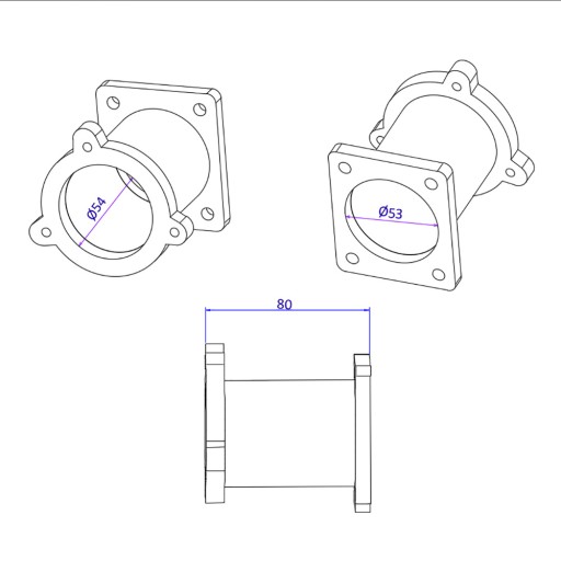 Flansza posiada zwiększony przepływ powietrza, światło 53mm na wejściu do kolektora. Rozwiązanie to niweluje turbulencje powietrza, które są wywoływane przez gwałtowną redukcję średnicy.