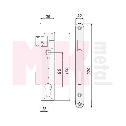 - zamek zapadkowo-zasuwkowy - wąski, rozstaw 90 mm, do furtek prawych i lewych