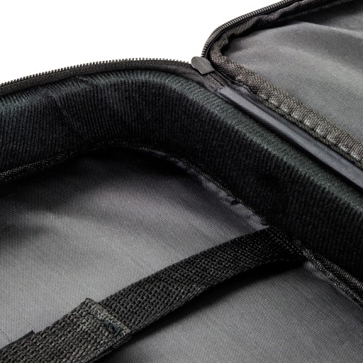 Torba wykonana jest z wysokiej jakości materiału. Ścianki boczne wzmocnione są listwą metalową, a od wewnątrz wyłożone miękką warstwą pianki skutecznie chroniącej notebook przed uderzeniami i zarysowaniami. Komora notebooka z każdej strony jest wyłożona miękkimi materiałami. Z zewnątrz - z przodu - torba posiada funkcjonalną kieszeń, np. na dokumenty. Wewnątrz torby znajduje się druga kieszeń oraz pasek dodatkowo przytrzymujący notebook.