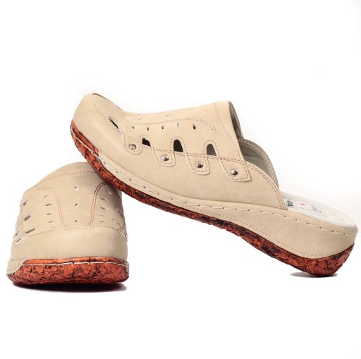 HIT klapki damskie na niskiej koturnie w kolorze beżowym, lekkie i wygodne.