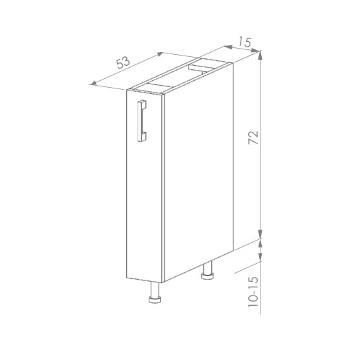 Do lepszej organizacji przedmiotów w pomieszczeniu kuchennym polecana jest RIMINI SZAFKA DOLNA CARGO DC-15 BIAŁY POŁYSK. Posiada pojedyncze drzwi z zawiasami z mechanizmem cichego domyku dla większego bezpieczeństwa i komfortu użytkowania. Elegancki design podkreśla frezowany uchwyt, który jednocześnie ułatwia dostęp do przechowywanej zawartości. W szafce można przechowywać naczynia czy też artykuły spożywcze. Ze względu na wymiary wynoszące 15cm x 82cm x 53cm, prezentowany model świetnie odnajdzie się zarówno w mniejszych, jak i większych kuchniach. Powierzchnia szafki utrzymana jest w białym kolorze o wysokim połysku.