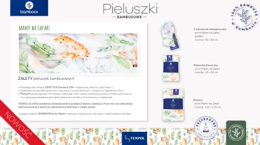 Tkanina z której wykonana jest pieluszka została doceniona przez Instytut Włókiennictwa, który przyznał jej Certyfikat Oeko-Tex Standard 100. Tym samym potwierdzając najwyższą jakość tego wyrobu.