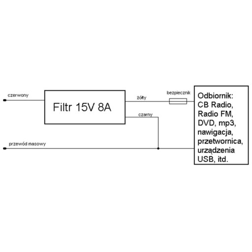 Fabrycznie nowy, wysokiej jakości filtr przeciwzakłóceniowy do samochodowych urządzeń wrażliwych na zakłócenia sygnału, jak np. bardzo popularne CB radio.