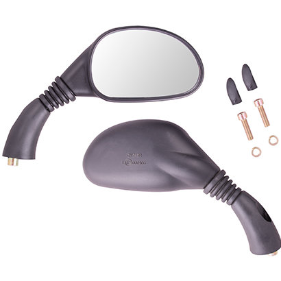 Masywne czarne lusterka o klasycznym kształcie. Posiadają możliwość niewielkiej regulacji kąta widzenia. Ochronę ruchomej części przed dostaniem się do niej brudu zapewnia gumowa osłona. W zestawie znajdują się śruby mocujące o średnicy 8 mm oraz dopasowane zaślepki.