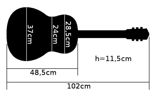 Wymiary zewnętrzne futerału na gitarę klasyczną: 106,5cm x 44cm x 16cm.