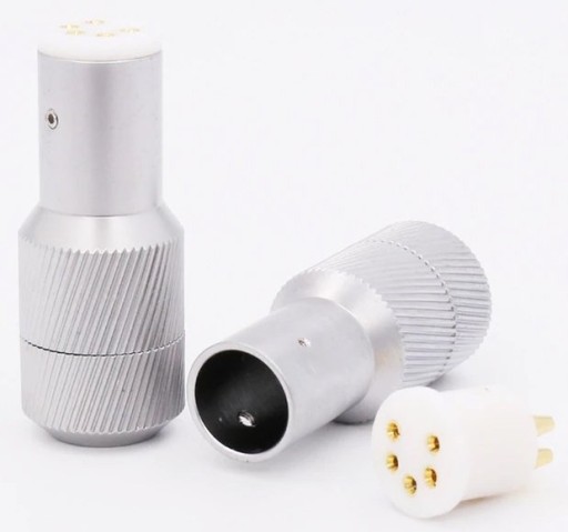 Najwyższej jakości gniazdo DIN do podłączenia przewodów w ramionach gramofonowych. Elementy stykowe wykonane z mosiądzu pokryte rodem