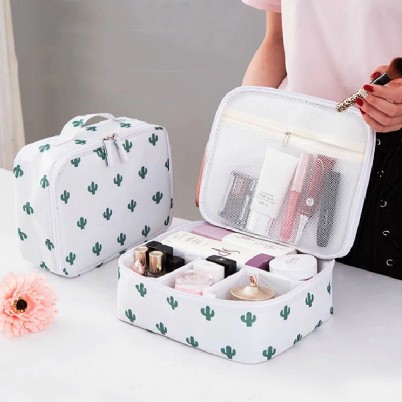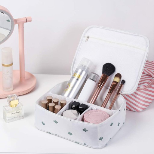 Kosmetyczka podróżna – walizeczka jest propozycją dla osób, które chcą zapewnić bezpieczeństwo swoim kosmetykom i lekom podczas podróży. Dzięki regulowanym przekładkom zapinanym na rzepy bezpiecznie oddzielisz szklane słoiczki i buteleczki bez obawy o to, że w transporcie ulegną uszkodzeniu. Przekładki ułatwiają również uporządkowanie zawartości organizera a w razie potrzeba można je odpiąć. Kosmetyczka jest bardzo pojemna i funkcjonalna oraz komfortowa w użytkowaniu.
