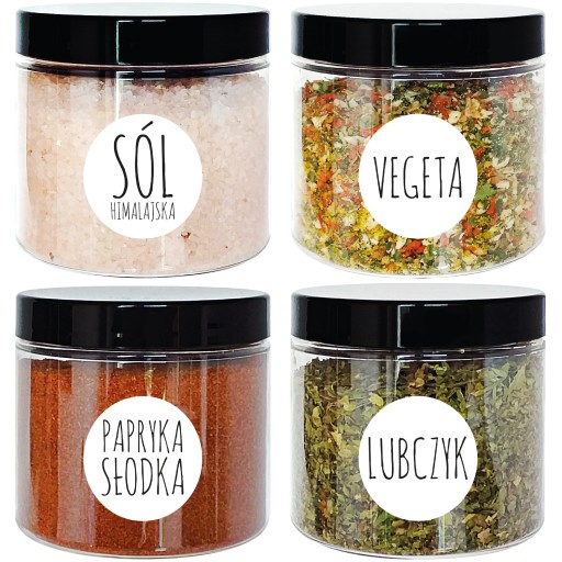 Naklejki, które otrzymają Państwo w zestawie dotyczą następujących przypraw: