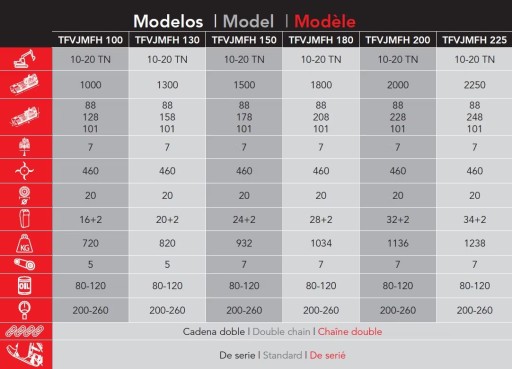 Dla tego modelu dostępne są również modyfikacje dla koparek o szerokości roboczej 100, 130, 150, 180 i 225 cm.