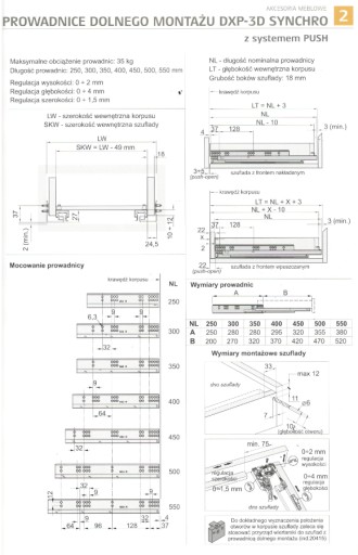 Prowadnica dolnego montażu pełen wysuw DXS-3D synchro z systemem PUSH L-500