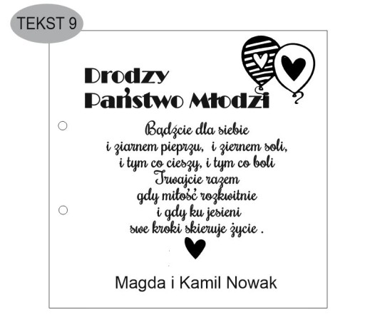 - pozostałe informacje do wykonania kartki takie jak: imiona młodych, data ślubu , podpis od kogo ma być kartka.